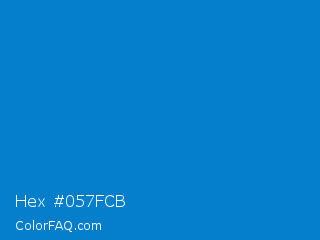 Hex #057fcb Color is a normal blue color and the nearest color is Lochmara #007ec7. Hex code #057fcb and RGB value is rgb(5,127,203). In RGB color space, this color is composed of 2% red, 50% green, 80% blue, In CMYK color space, this color is composed of 98% cyan, 37% magenta, 0% yellow , 20% black , In HSL color space, this color has a hue angle of 203° , 95% saturation and 41% lightness.