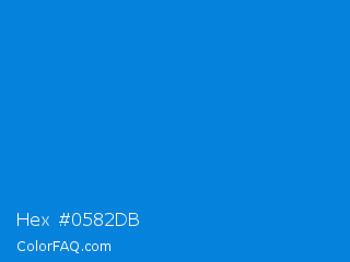 Hex #0582db Color is a normal blue color and the nearest color is Rich Electric Blue #0892d0. Hex code #0582db and RGB value is rgb(5,130,219). In RGB color space, this color is composed of 2% red, 51% green, 86% blue, In CMYK color space, this color is composed of 98% cyan, 41% magenta, 0% yellow , 14% black , In HSL color space, this color has a hue angle of 205° , 96% saturation and 44% lightness.