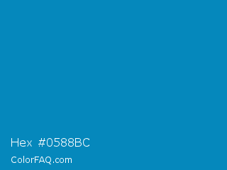 Hex #0588bc Color is a normal blue color and the nearest color is Blue NCS #0087bd. Hex code #0588bc and RGB value is rgb(5,136,188). In RGB color space, this color is composed of 2% red, 53% green, 74% blue, In CMYK color space, this color is composed of 97% cyan, 28% magenta, 0% yellow , 26% black , In HSL color space, this color has a hue angle of 197° , 95% saturation and 38% lightness.