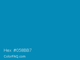Hex #058bb7 Color is a normal blue color and the nearest color is Blue NCS #0087bd. Hex code #058bb7 and RGB value is rgb(5,139,183). In RGB color space, this color is composed of 2% red, 55% green, 72% blue, In CMYK color space, this color is composed of 97% cyan, 24% magenta, 0% yellow , 28% black , In HSL color space, this color has a hue angle of 195° , 95% saturation and 37% lightness.
