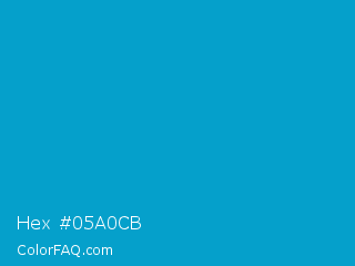 Hex #05a0cb Color is a normal cyan color and the nearest color is Pacific Blue Crayola #009dc4. Hex code #05a0cb and RGB value is rgb(5,160,203). In RGB color space, this color is composed of 2% red, 63% green, 80% blue, In CMYK color space, this color is composed of 98% cyan, 21% magenta, 0% yellow , 20% black , In HSL color space, this color has a hue angle of 193° , 95% saturation and 41% lightness.
