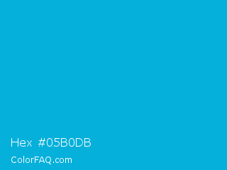 Hex #05b0db Color is a normal cyan color and the nearest color is Cerulean #02a4d3. Hex code #05b0db and RGB value is rgb(5,176,219). In RGB color space, this color is composed of 2% red, 69% green, 86% blue, In CMYK color space, this color is composed of 98% cyan, 20% magenta, 0% yellow , 14% black , In HSL color space, this color has a hue angle of 192° , 96% saturation and 44% lightness.