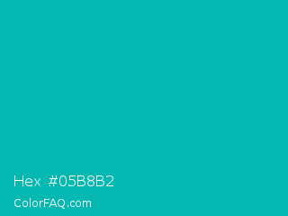 Hex #05b8b2 Color is a normal cyan color and the nearest color is Tiffany Blue #0abab5. Hex code #05b8b2 and RGB value is rgb(5,184,178). In RGB color space, this color is composed of 2% red, 72% green, 70% blue, In CMYK color space, this color is composed of 97% cyan, 0% magenta, 3% yellow , 28% black , In HSL color space, this color has a hue angle of 178° , 95% saturation and 37% lightness.