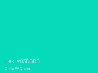 Hex #05dbbb Color is a normal cyan color and the nearest color is Robins Egg Blue #00cccc. Hex code #05dbbb and RGB value is rgb(5,219,187). In RGB color space, this color is composed of 2% red, 86% green, 73% blue, In CMYK color space, this color is composed of 98% cyan, 0% magenta, 15% yellow , 14% black , In HSL color space, this color has a hue angle of 171° , 96% saturation and 44% lightness.