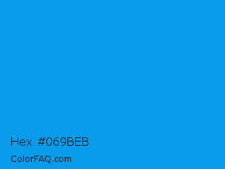 Hex #069beb Color is a normal blue color and the nearest color is Vivid Cerulean #00aaee. Hex code #069beb and RGB value is rgb(6,155,235). In RGB color space, this color is composed of 2% red, 61% green, 92% blue, In CMYK color space, this color is composed of 97% cyan, 34% magenta, 0% yellow , 8% black , In HSL color space, this color has a hue angle of 201° , 95% saturation and 47% lightness.