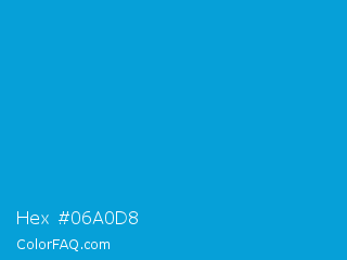 Hex #06a0d8 Color is a normal blue color and the nearest color is Cerulean #02a4d3. Hex code #06a0d8 and RGB value is rgb(6,160,216). In RGB color space, this color is composed of 2% red, 63% green, 85% blue, In CMYK color space, this color is composed of 97% cyan, 26% magenta, 0% yellow , 15% black , In HSL color space, this color has a hue angle of 196° , 95% saturation and 44% lightness.