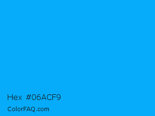 Hex #06acf9 Color is a normal blue color and the nearest color is Vivid Cerulean #00aaee. Hex code #06acf9 and RGB value is rgb(6,172,249). In RGB color space, this color is composed of 2% red, 67% green, 98% blue, In CMYK color space, this color is composed of 98% cyan, 31% magenta, 0% yellow , 2% black , In HSL color space, this color has a hue angle of 199° , 95% saturation and 50% lightness.