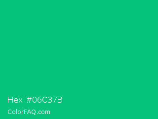 Hex #06c37b Color is a normal green color and the nearest color is Mountain Meadow Crayola #1ab385. Hex code #06c37b and RGB value is rgb(6,195,123). In RGB color space, this color is composed of 2% red, 76% green, 48% blue, In CMYK color space, this color is composed of 97% cyan, 0% magenta, 37% yellow , 24% black , In HSL color space, this color has a hue angle of 157° , 94% saturation and 39% lightness.