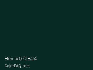 Hex #072b24 Color is a very dark cyan color and the nearest color is Burnham #002e20. Hex code #072b24 and RGB value is rgb(7,43,36). In RGB color space, this color is composed of 3% red, 17% green, 14% blue, In CMYK color space, this color is composed of 84% cyan, 0% magenta, 16% yellow , 83% black , In HSL color space, this color has a hue angle of 168° , 72% saturation and 10% lightness.