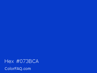 Hex #073bca Color is a normal blue color and the nearest color is Absolute Zero #0048ba. Hex code #073bca and RGB value is rgb(7,59,202). In RGB color space, this color is composed of 3% red, 23% green, 79% blue, In CMYK color space, this color is composed of 97% cyan, 71% magenta, 0% yellow , 21% black , In HSL color space, this color has a hue angle of 224° , 93% saturation and 41% lightness.