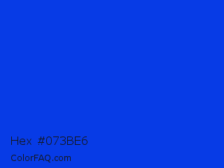 Hex #073be6 Color is a normal blue color and the nearest color is Blue RYB #0247fe. Hex code #073be6 and RGB value is rgb(7,59,230). In RGB color space, this color is composed of 3% red, 23% green, 90% blue, In CMYK color space, this color is composed of 97% cyan, 74% magenta, 0% yellow , 10% black , In HSL color space, this color has a hue angle of 226° , 94% saturation and 46% lightness.