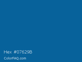 Hex #07629b Color is a normal blue color and the nearest color is Bahama Blue #026395. Hex code #07629b and RGB value is rgb(7,98,155). In RGB color space, this color is composed of 3% red, 38% green, 61% blue, In CMYK color space, this color is composed of 95% cyan, 37% magenta, 0% yellow , 39% black , In HSL color space, this color has a hue angle of 203° , 91% saturation and 32% lightness.