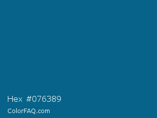 Hex #076389 Color is a dark blue color and the nearest color is Orient #015e85. Hex code #076389 and RGB value is rgb(7,99,137). In RGB color space, this color is composed of 3% red, 39% green, 54% blue, In CMYK color space, this color is composed of 95% cyan, 28% magenta, 0% yellow , 46% black , In HSL color space, this color has a hue angle of 198° , 90% saturation and 28% lightness.