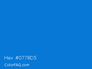 Hex #0778d5 Color is a normal blue color and the nearest color is True Blue #0073cf. Hex code #0778d5 and RGB value is rgb(7,120,213). In RGB color space, this color is composed of 3% red, 47% green, 84% blue, In CMYK color space, this color is composed of 97% cyan, 44% magenta, 0% yellow , 16% black , In HSL color space, this color has a hue angle of 207° , 94% saturation and 43% lightness.