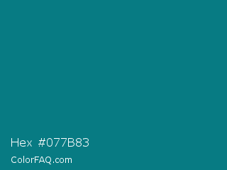 Hex #077b83 Color is a dark cyan color and the nearest color is Blue Lagoon #017987. Hex code #077b83 and RGB value is rgb(7,123,131). In RGB color space, this color is composed of 3% red, 48% green, 51% blue, In CMYK color space, this color is composed of 95% cyan, 6% magenta, 0% yellow , 49% black , In HSL color space, this color has a hue angle of 184° , 90% saturation and 27% lightness.