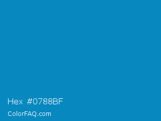 Hex #0788bf Color is a normal blue color and the nearest color is Blue NCS #0087bd. Hex code #0788bf and RGB value is rgb(7,136,191). In RGB color space, this color is composed of 3% red, 53% green, 75% blue, In CMYK color space, this color is composed of 96% cyan, 29% magenta, 0% yellow , 25% black , In HSL color space, this color has a hue angle of 198° , 93% saturation and 39% lightness.