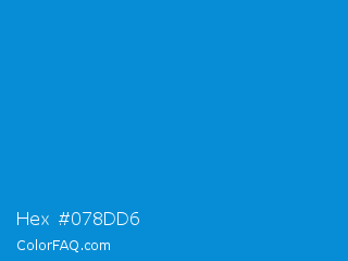 Hex #078dd6 Color is a normal blue color and the nearest color is Rich Electric Blue #0892d0. Hex code #078dd6 and RGB value is rgb(7,141,214). In RGB color space, this color is composed of 3% red, 55% green, 84% blue, In CMYK color space, this color is composed of 97% cyan, 34% magenta, 0% yellow , 16% black , In HSL color space, this color has a hue angle of 201° , 94% saturation and 43% lightness.