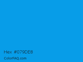 Hex #079de8 Color is a normal blue color and the nearest color is Vivid Cerulean #00aaee. Hex code #079de8 and RGB value is rgb(7,157,232). In RGB color space, this color is composed of 3% red, 62% green, 91% blue, In CMYK color space, this color is composed of 97% cyan, 32% magenta, 0% yellow , 9% black , In HSL color space, this color has a hue angle of 200° , 94% saturation and 47% lightness.