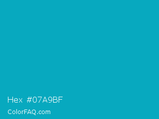 Hex #07a9bf Color is a normal cyan color and the nearest color is Pacific Blue Crayola #009dc4. Hex code #07a9bf and RGB value is rgb(7,169,191). In RGB color space, this color is composed of 3% red, 66% green, 75% blue, In CMYK color space, this color is composed of 96% cyan, 12% magenta, 0% yellow , 25% black , In HSL color space, this color has a hue angle of 187° , 93% saturation and 39% lightness.