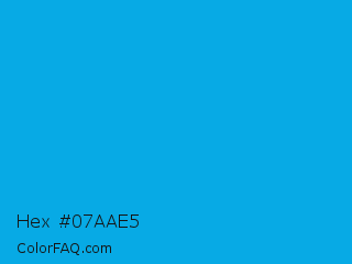 Hex #07aae5 Color is a normal blue color and the nearest color is Vivid Cerulean #00aaee. Hex code #07aae5 and RGB value is rgb(7,170,229). In RGB color space, this color is composed of 3% red, 67% green, 90% blue, In CMYK color space, this color is composed of 97% cyan, 26% magenta, 0% yellow , 10% black , In HSL color space, this color has a hue angle of 196° , 94% saturation and 46% lightness.