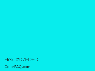 Hex #07eded Color is a normal cyan color and the nearest color is Bright Turquoise #08e8de. Hex code #07eded and RGB value is rgb(7,237,237). In RGB color space, this color is composed of 3% red, 93% green, 93% blue, In CMYK color space, this color is composed of 97% cyan, 0% magenta, 0% yellow , 7% black , In HSL color space, this color has a hue angle of 180° , 94% saturation and 48% lightness.