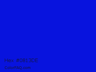Hex #0813de Color is a normal blue color and the nearest color is Medium Blue #0000cd. Hex code #0813de and RGB value is rgb(8,19,222). In RGB color space, this color is composed of 3% red, 7% green, 87% blue, In CMYK color space, this color is composed of 96% cyan, 91% magenta, 0% yellow , 13% black , In HSL color space, this color has a hue angle of 237° , 93% saturation and 45% lightness.