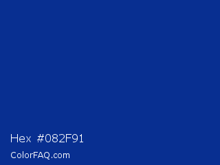 Hex #082f91 Color is a dark blue color and the nearest color is Air Force Blue USAF #00308f. Hex code #082f91 and RGB value is rgb(8,47,145). In RGB color space, this color is composed of 3% red, 18% green, 57% blue, In CMYK color space, this color is composed of 94% cyan, 68% magenta, 0% yellow , 43% black , In HSL color space, this color has a hue angle of 223° , 90% saturation and 30% lightness.
