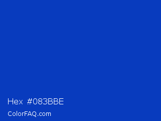 Hex #083bbe Color is a normal blue color and the nearest color is Absolute Zero #0048ba. Hex code #083bbe and RGB value is rgb(8,59,190). In RGB color space, this color is composed of 3% red, 23% green, 75% blue, In CMYK color space, this color is composed of 96% cyan, 69% magenta, 0% yellow , 25% black , In HSL color space, this color has a hue angle of 223° , 92% saturation and 39% lightness.