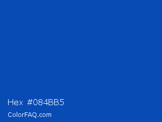 Hex #084bb5 Color is a normal blue color and the nearest color is Absolute Zero #0048ba. Hex code #084bb5 and RGB value is rgb(8,75,181). In RGB color space, this color is composed of 3% red, 29% green, 71% blue, In CMYK color space, this color is composed of 96% cyan, 59% magenta, 0% yellow , 29% black , In HSL color space, this color has a hue angle of 217° , 92% saturation and 37% lightness.
