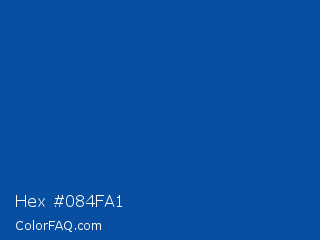 Hex #084fa1 Color is a normal blue color and the nearest color is USAFA Blue #004f98. Hex code #084fa1 and RGB value is rgb(8,79,161). In RGB color space, this color is composed of 3% red, 31% green, 63% blue, In CMYK color space, this color is composed of 95% cyan, 51% magenta, 0% yellow , 37% black , In HSL color space, this color has a hue angle of 212° , 91% saturation and 33% lightness.