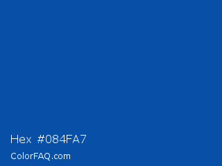 Hex #084fa7 Color is a normal blue color and the nearest color is Endeavour #0056a7. Hex code #084fa7 and RGB value is rgb(8,79,167). In RGB color space, this color is composed of 3% red, 31% green, 65% blue, In CMYK color space, this color is composed of 95% cyan, 53% magenta, 0% yellow , 35% black , In HSL color space, this color has a hue angle of 213° , 91% saturation and 34% lightness.