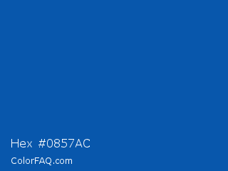 Hex #0857ac Color is a normal blue color and the nearest color is Endeavour #0056a7. Hex code #0857ac and RGB value is rgb(8,87,172). In RGB color space, this color is composed of 3% red, 34% green, 67% blue, In CMYK color space, this color is composed of 95% cyan, 49% magenta, 0% yellow , 33% black , In HSL color space, this color has a hue angle of 211° , 91% saturation and 35% lightness.