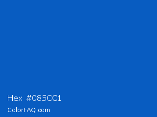 Hex #085cc1 Color is a normal blue color and the nearest color is Sapphire #0f52ba. Hex code #085cc1 and RGB value is rgb(8,92,193). In RGB color space, this color is composed of 3% red, 36% green, 76% blue, In CMYK color space, this color is composed of 96% cyan, 52% magenta, 0% yellow , 24% black , In HSL color space, this color has a hue angle of 213° , 92% saturation and 39% lightness.