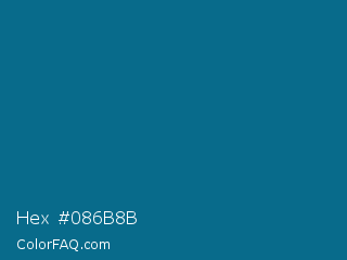 Hex #086b8b Color is a dark blue color and the nearest color is Sea Blue #006994. Hex code #086b8b and RGB value is rgb(8,107,139). In RGB color space, this color is composed of 3% red, 42% green, 55% blue, In CMYK color space, this color is composed of 94% cyan, 23% magenta, 0% yellow , 45% black , In HSL color space, this color has a hue angle of 195° , 89% saturation and 29% lightness.
