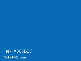 Hex #086bb6 Color is a normal blue color and the nearest color is Spanish Blue #0070b8. Hex code #086bb6 and RGB value is rgb(8,107,182). In RGB color space, this color is composed of 3% red, 42% green, 71% blue, In CMYK color space, this color is composed of 96% cyan, 41% magenta, 0% yellow , 29% black , In HSL color space, this color has a hue angle of 206° , 92% saturation and 37% lightness.