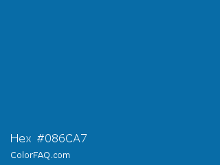 Hex #086ca7 Color is a normal blue color and the nearest color is Sapphire Blue #0067a5. Hex code #086ca7 and RGB value is rgb(8,108,167). In RGB color space, this color is composed of 3% red, 42% green, 65% blue, In CMYK color space, this color is composed of 95% cyan, 35% magenta, 0% yellow , 35% black , In HSL color space, this color has a hue angle of 202° , 91% saturation and 34% lightness.