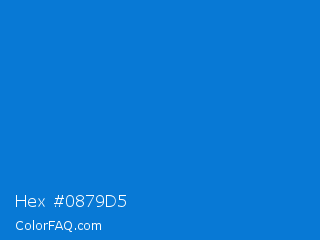 Hex #0879d5 Color is a normal blue color and the nearest color is True Blue #0073cf. Hex code #0879d5 and RGB value is rgb(8,121,213). In RGB color space, this color is composed of 3% red, 47% green, 84% blue, In CMYK color space, this color is composed of 96% cyan, 43% magenta, 0% yellow , 16% black , In HSL color space, this color has a hue angle of 207° , 93% saturation and 43% lightness.