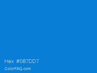 Hex #087dd7 Color is a normal blue color and the nearest color is True Blue #0073cf. Hex code #087dd7 and RGB value is rgb(8,125,215). In RGB color space, this color is composed of 3% red, 49% green, 84% blue, In CMYK color space, this color is composed of 96% cyan, 42% magenta, 0% yellow , 16% black , In HSL color space, this color has a hue angle of 206° , 93% saturation and 44% lightness.