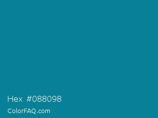 Hex #088098 Color is a normal cyan color and the nearest color is Metallic Seaweed #0a7e8c. Hex code #088098 and RGB value is rgb(8,128,152). In RGB color space, this color is composed of 3% red, 50% green, 60% blue, In CMYK color space, this color is composed of 95% cyan, 16% magenta, 0% yellow , 40% black , In HSL color space, this color has a hue angle of 190° , 90% saturation and 31% lightness.