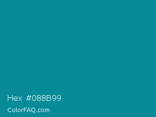 Hex #088b99 Color is a normal cyan color and the nearest color is Blue Chill #0c8990. Hex code #088b99 and RGB value is rgb(8,139,153). In RGB color space, this color is composed of 3% red, 55% green, 60% blue, In CMYK color space, this color is composed of 95% cyan, 9% magenta, 0% yellow , 40% black , In HSL color space, this color has a hue angle of 186° , 90% saturation and 32% lightness.