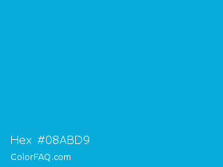 Hex #08abd9 Color is a normal cyan color and the nearest color is Cerulean #02a4d3. Hex code #08abd9 and RGB value is rgb(8,171,217). In RGB color space, this color is composed of 3% red, 67% green, 85% blue, In CMYK color space, this color is composed of 96% cyan, 21% magenta, 0% yellow , 15% black , In HSL color space, this color has a hue angle of 193° , 93% saturation and 44% lightness.