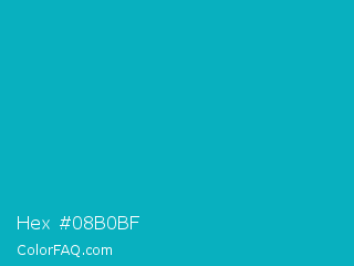 Hex #08b0bf Color is a normal cyan color and the nearest color is Tiffany Blue #0abab5. Hex code #08b0bf and RGB value is rgb(8,176,191). In RGB color space, this color is composed of 3% red, 69% green, 75% blue, In CMYK color space, this color is composed of 96% cyan, 8% magenta, 0% yellow , 25% black , In HSL color space, this color has a hue angle of 185° , 92% saturation and 39% lightness.