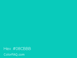 Hex #08cbbb Color is a normal cyan color and the nearest color is Amazonite #00c4b0. Hex code #08cbbb and RGB value is rgb(8,203,187). In RGB color space, this color is composed of 3% red, 80% green, 73% blue, In CMYK color space, this color is composed of 96% cyan, 0% magenta, 8% yellow , 20% black , In HSL color space, this color has a hue angle of 175° , 92% saturation and 41% lightness.