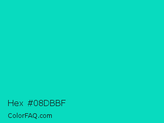 Hex #08dbbf Color is a normal cyan color and the nearest color is Robins Egg Blue #00cccc. Hex code #08dbbf and RGB value is rgb(8,219,191). In RGB color space, this color is composed of 3% red, 86% green, 75% blue, In CMYK color space, this color is composed of 96% cyan, 0% magenta, 13% yellow , 14% black , In HSL color space, this color has a hue angle of 172° , 93% saturation and 45% lightness.