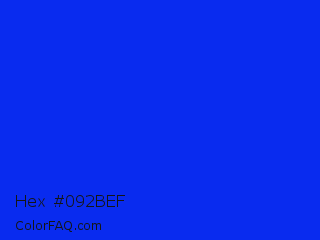 Hex #092bef Color is a normal blue color and the nearest color is Bluebonnet #1c1cf0. Hex code #092bef and RGB value is rgb(9,43,239). In RGB color space, this color is composed of 4% red, 17% green, 94% blue, In CMYK color space, this color is composed of 96% cyan, 82% magenta, 0% yellow , 6% black , In HSL color space, this color has a hue angle of 231° , 93% saturation and 49% lightness.