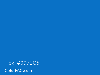 Hex #0971c6 Color is a normal blue color and the nearest color is True Blue #0073cf. Hex code #0971c6 and RGB value is rgb(9,113,198). In RGB color space, this color is composed of 4% red, 44% green, 78% blue, In CMYK color space, this color is composed of 95% cyan, 43% magenta, 0% yellow , 22% black , In HSL color space, this color has a hue angle of 207° , 91% saturation and 41% lightness.