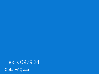 Hex #0979d4 Color is a normal blue color and the nearest color is True Blue #0073cf. Hex code #0979d4 and RGB value is rgb(9,121,212). In RGB color space, this color is composed of 4% red, 47% green, 83% blue, In CMYK color space, this color is composed of 96% cyan, 43% magenta, 0% yellow , 17% black , In HSL color space, this color has a hue angle of 207° , 92% saturation and 43% lightness.