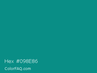 Hex #098e86 Color is a dark cyan color and the nearest color is Dark Cyan #008b8b. Hex code #098e86 and RGB value is rgb(9,142,134). In RGB color space, this color is composed of 4% red, 56% green, 53% blue, In CMYK color space, this color is composed of 94% cyan, 0% magenta, 6% yellow , 44% black , In HSL color space, this color has a hue angle of 176° , 88% saturation and 30% lightness.