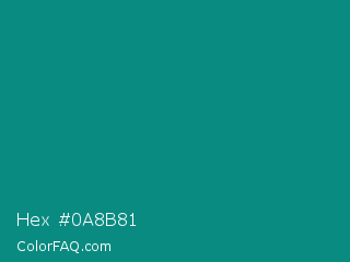 Hex #0a8b81 Color is a dark cyan color and the nearest color is Teal Green #00827f. Hex code #0a8b81 and RGB value is rgb(10,139,129). In RGB color space, this color is composed of 4% red, 55% green, 51% blue, In CMYK color space, this color is composed of 93% cyan, 0% magenta, 7% yellow , 45% black , In HSL color space, this color has a hue angle of 175° , 87% saturation and 29% lightness.