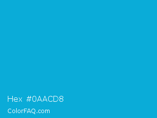 Hex #0aacd8 Color is a normal cyan color and the nearest color is Cerulean #02a4d3. Hex code #0aacd8 and RGB value is rgb(10,172,216). In RGB color space, this color is composed of 4% red, 67% green, 85% blue, In CMYK color space, this color is composed of 95% cyan, 20% magenta, 0% yellow , 15% black , In HSL color space, this color has a hue angle of 193° , 91% saturation and 44% lightness.